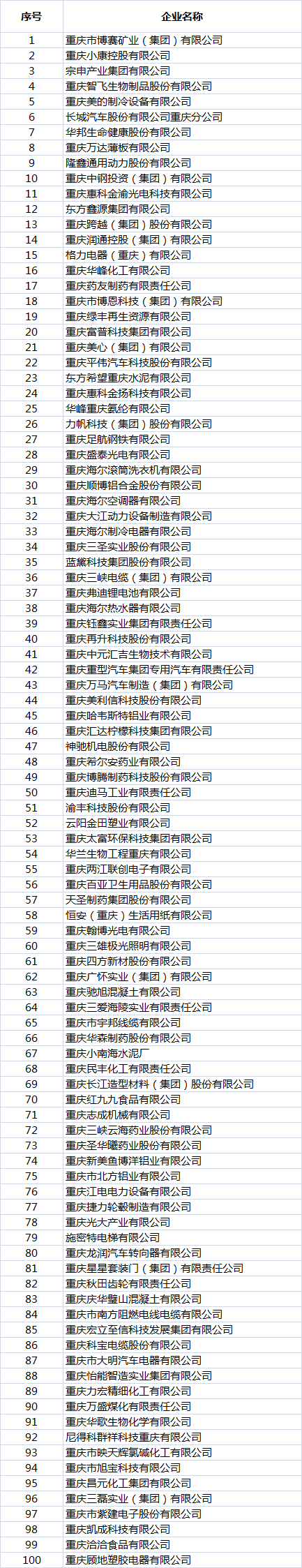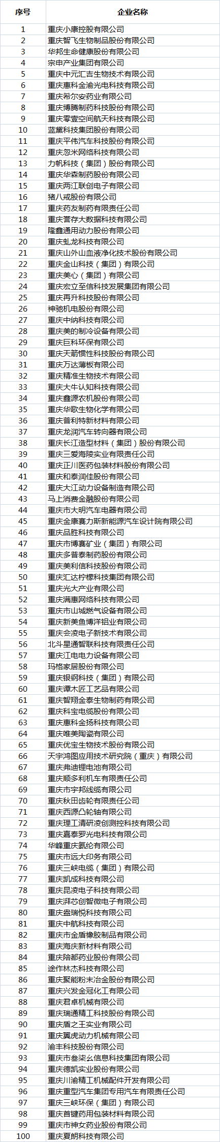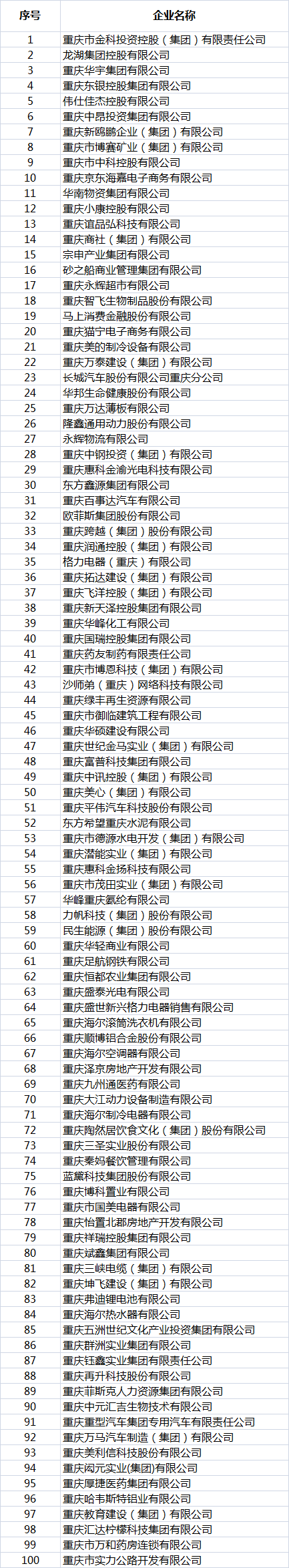 附:2021重慶民營企業100強榜單;2021重慶民營企業制造業100強榜單;2021重慶民營企業創新指數100強榜單。