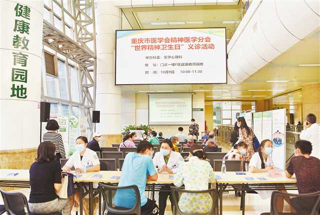 昨日上午10點,在南岸區宏聲文化廣場,南岸區精神衛生中心承辦的2021年世界精神衛生日主題宣傳活動在此拉開帷幕!扒嗌倌甑男睦斫】祮栴}遠比我們想象中嚴重!蹦习秴^精神衛生中心精神病區主任劉海波說,近10年來,到該中心就診的青少年明顯增多。