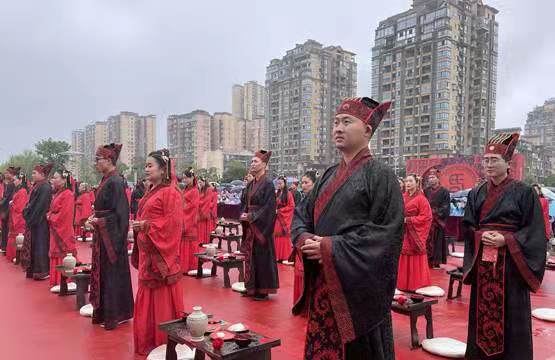 本次集體婚禮共有39對新人和1對金婚夫婦參與。在司儀的引領下,新人們著漢服、行漢禮,經過同食禮、飲合巹、執手禮、誦婚書、戴簪花、共結發、封壇禮等傳統婚禮流程,攜手邁向生活新篇章。