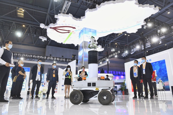 物博會現場,移動式高精度測量機器人吸引嘉賓駐足參觀。中建三局、中建鐵投集團供圖