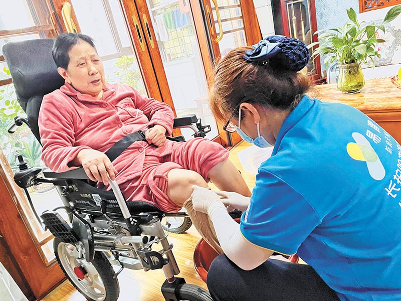 在巴南區怡園小區,專業護理人員正在為失能老人進行護理。記者 王翔/視覺重慶
