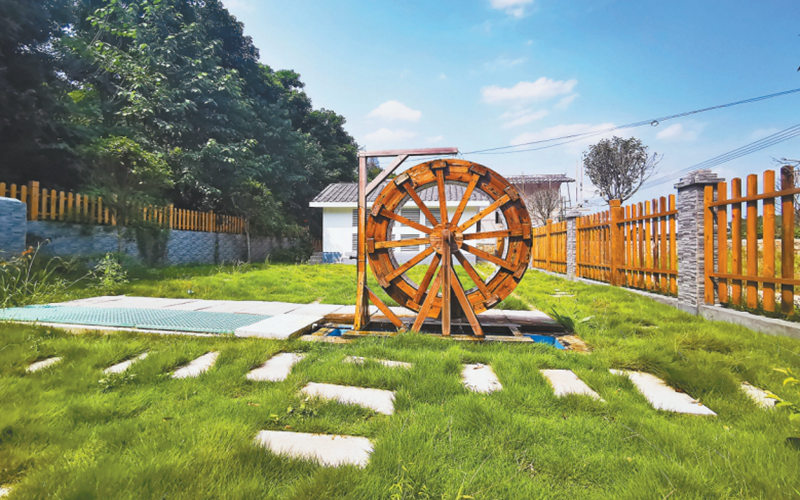 北碚區針對當地群眾的所急所盼,為素心村“量身定做”了“組合式復合生物濾池+高負荷活性生物濾床”工藝污水處理站,日處理污水能力50立方米,噪音低、效果好、后期維護成本也低。當地還結合鄉村旅游為污水處理站設計了外觀,悠悠轉動的水車抽上來的水流便是經過處理的污水,沒有異味。建成投用后,這個污水處理站成為當地獨特的風景。