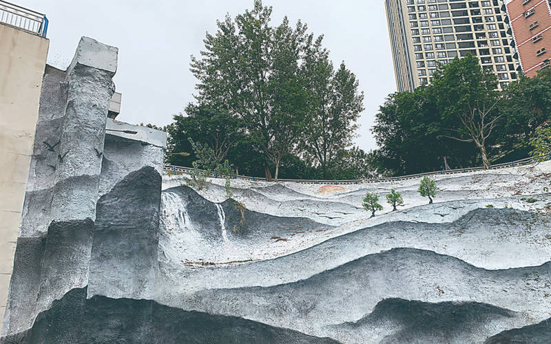 陳先生說:“你瞧,這個20多米的通道,一頭連著的是彈子石站4號出入口,另一頭連著的是一條通道,看上去比較隱蔽;再加上這條通道兩側高達10米的陡坡峭壁,更加凸顯一種神秘感。在這樣的峭壁上作畫,自然創意滿滿!