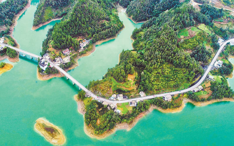 10月17日,烏江酉陽龔灘段,青山綠水風景秀美。近年來,酉陽堅持生態優先、綠色發展,通過減少水土流失、改善土壤保持和水源涵養、保育生物多樣性,筑牢長江生態屏障。