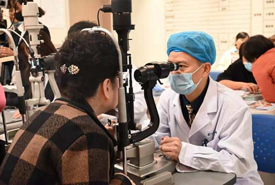 譚吉林為患者進行白內障檢查。重慶愛爾眼科醫院(總院)供圖