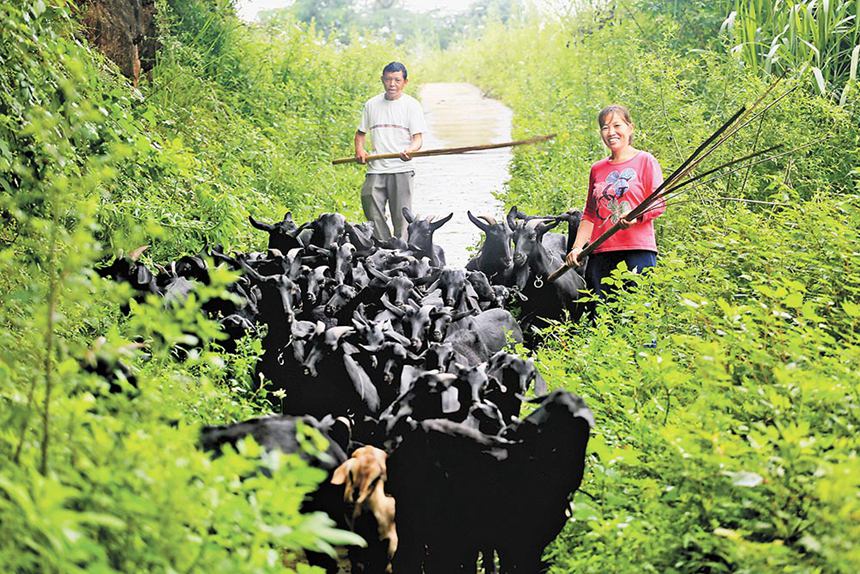 大足區中敖鎮觀寺村,隆元友和妻子謝世英正在放養黑山羊。(本報資料圖片)通訊員 瞿波 攝\視覺重慶