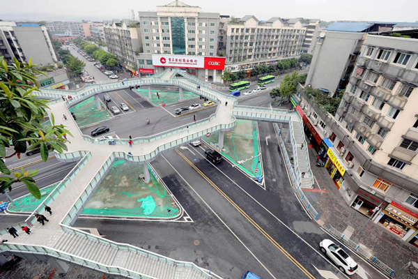 “1號天橋修建以前是個轉盤,也是白市驛鎮的標志性景觀,車流量極大,周邊學校、居民小區聚集,因此過往行人極多!卑资畜A鎮相關負責人介紹:“修建了人行天橋后,滿足了廣大市民的出行需求,轉變人車搶行、混流的情況,是一項名副其實的惠民工程!