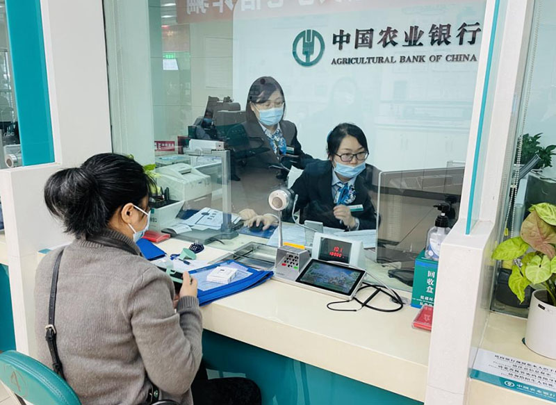 農行重慶市分行員工幫助客戶認購柜臺債。農行重慶市分行供圖