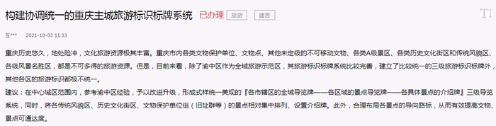 網友建議統一城區旅游標識 重慶文旅委:積極采納