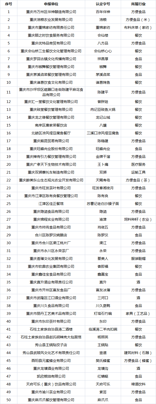近年來,重慶市商務委積極貫徹落實黨中央、國務院、市委、市政府關于保護促進老字號發展的相關要求,推動老字號在傳承中堅持創新、在創新中尋求發展。日前,重慶市商務委發布第六批重慶老字號認定名單,50個品牌被認定為新一批重慶老字號,重慶老字號的隊伍薪火相傳不斷壯大,持續綻放新活力。