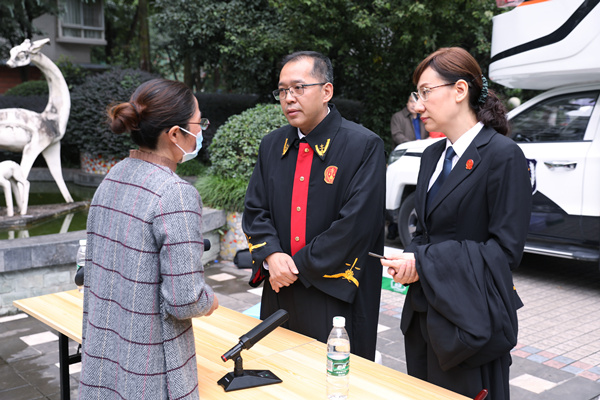 庭審結束后,法官現場解答群眾的相關法律問題。重慶五中院供圖