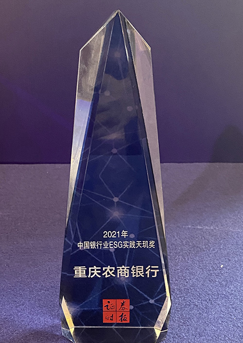 重慶農商行獲2021年中國銀行業ESG實踐天璣獎。重慶農商行供圖