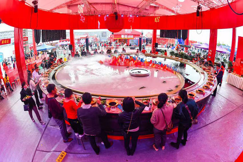 作為重慶火鍋節的獨有特色,今年的萬人火鍋宴集結了珮姐重慶火鍋、劉一手重慶火鍋、重慶秦媽火鍋、周師兄重慶火鍋、庖丁家鮮牛肉火鍋、后火鍋、怒火八零牛肉串串、豪渝火鍋、朱光玉火鍋館組成的“重慶火鍋天團”,還有重慶小天鵝火鍋、德莊大鍋、魯西肥牛、大虎老火鍋、簽小二火鍋串串等30多家重慶知名火鍋品牌,現場開燙。市民可一站式打卡體驗重慶頂流火鍋品牌,挑選喜愛的火鍋現場開燙,感受重慶火鍋獨特的文化魅力。