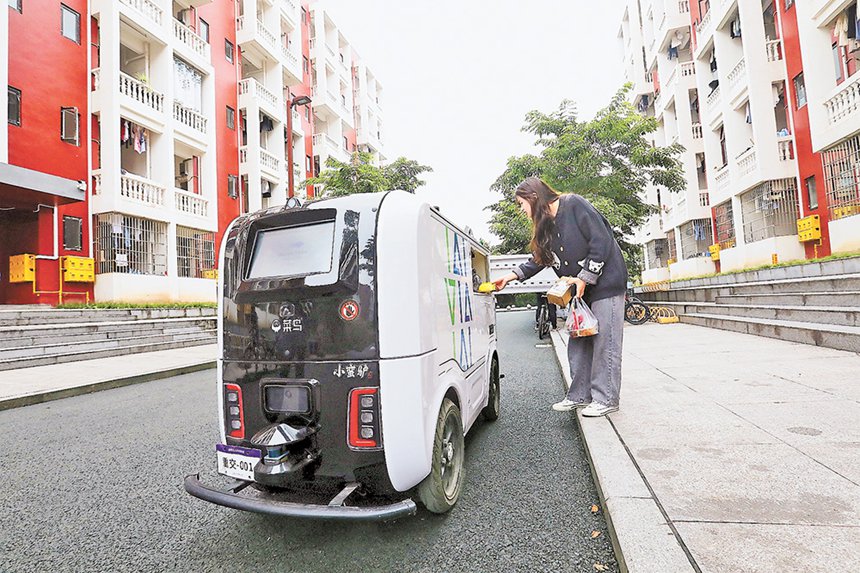 據了解,菜鳥無人快遞車“小蠻驢”近日在該校投用,這也是重慶首個無人快遞車!懊康揭粋站點前,它會給取件人發信息、打電話,讓他到站點取件!敝貞c交職院未來技術中心菜鳥驛站負責人鄭星說,學校一共設置了30個站點,讓師生在宿舍、食堂、教學樓等地可以便捷取件,而不用到集中取件點來回奔波。