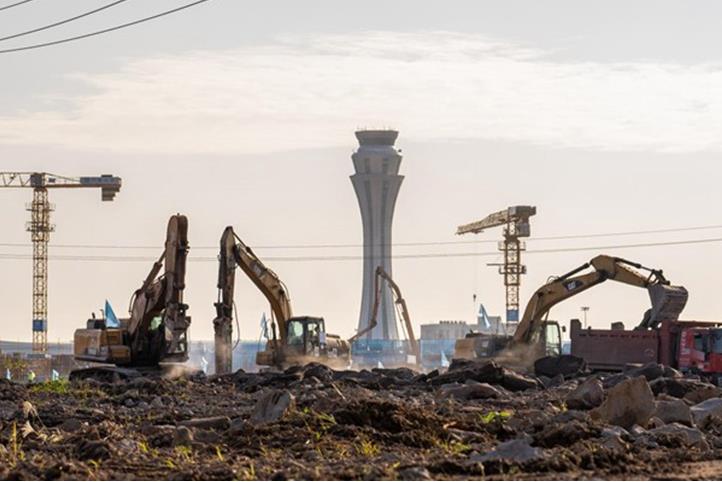飛行區施工現場機械正在清表,遠處是已投用的T3A航站樓。重慶江北國際機場擴建指揮部供圖