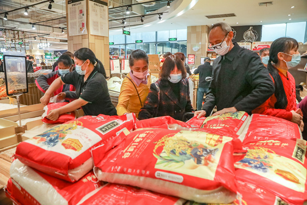據了解,目前重百新世紀門店的大米庫存近800噸,庫房庫存140噸,訂單在途的300噸大米也預計今晚到達,現有商品庫存能夠滿足一個月的保供需求。