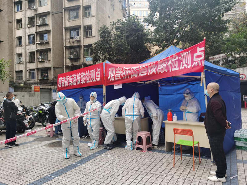志愿者積極支援一線核酸檢測服務工作。中信銀行重慶分行供圖