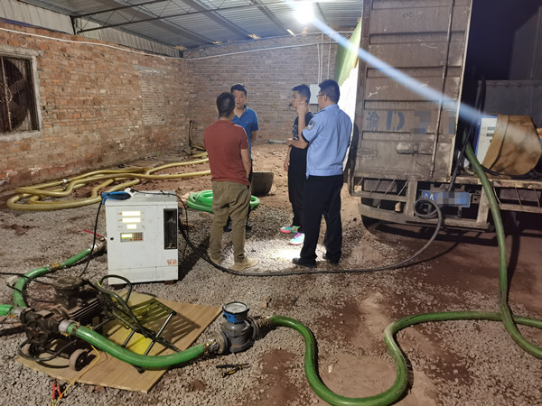 2021年5月,沙坪壩區公安分局民警通過零星的幾條線索巡線深挖,發現在回龍壩鎮有一銷售偽劣汽油的黑作坊。通過前期摸排與實地調查,5月20日,沙坪壩警方開展抓捕行動,當場抓獲涉嫌銷售偽劣汽油的犯罪嫌疑人劉某與李某,另一名嫌疑人伍某在逃,現場查獲偽劣92號汽油約40噸。