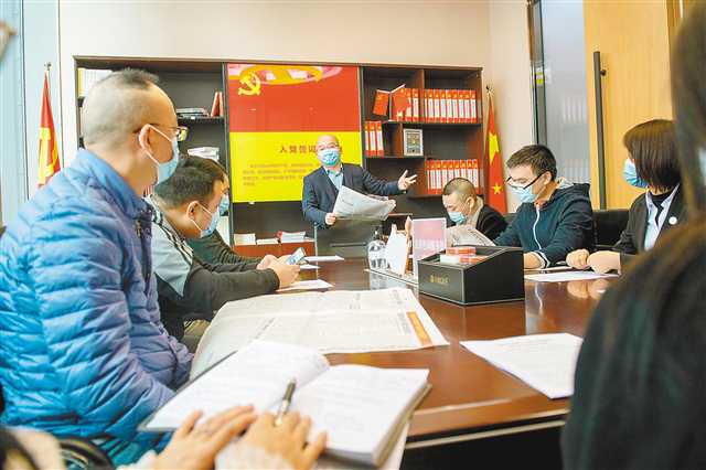 十一月十五日,江北區江北城街道金融城三號樓宇黨群服務站,非公企業的黨員代表一起學習黨的十九屆六中全會精神。記者 崔力 攝\視覺重慶