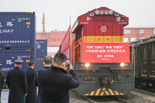 2021年中歐班列(成渝)號開行第一趟列車。重慶國際物流樞紐園區供圖
