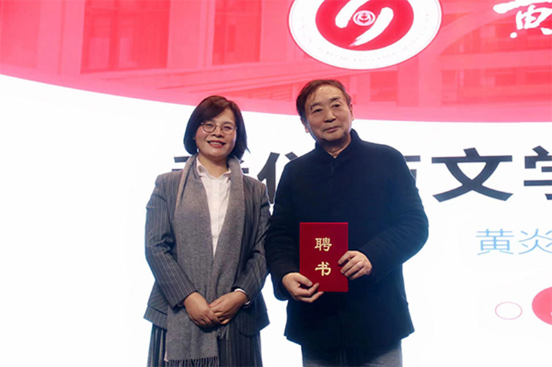 校長魏莉為黃濟人頒發文學社顧問聘書。黃炎培中學供圖