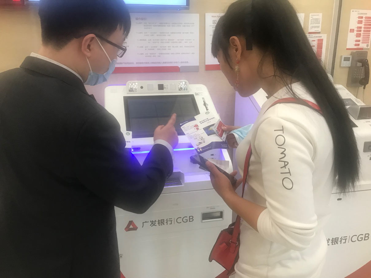 指導客戶使用智能器具(資料圖)。廣發銀行重慶分行供稿