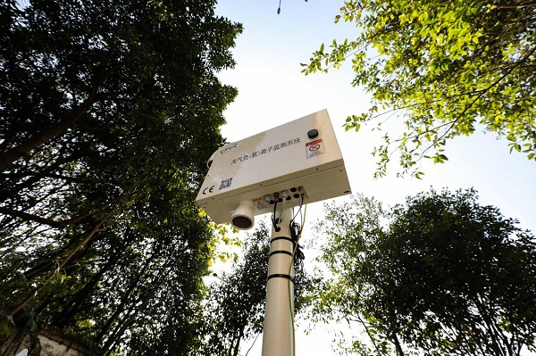 位于迎龍湖國家濕地公園的負離子監測設備。郭志如攝