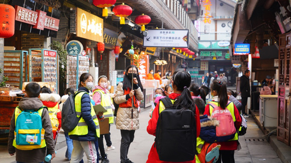 人民網重慶11月30日電 11月28日,由共青團重慶市江北區委、江北區青少年活動中心主辦的“行走的課堂”公益品牌活動持續開展,由江北區衛健委推薦的20余名醫護人員子女參加了這場探訪巴渝文化的城市行走之旅。