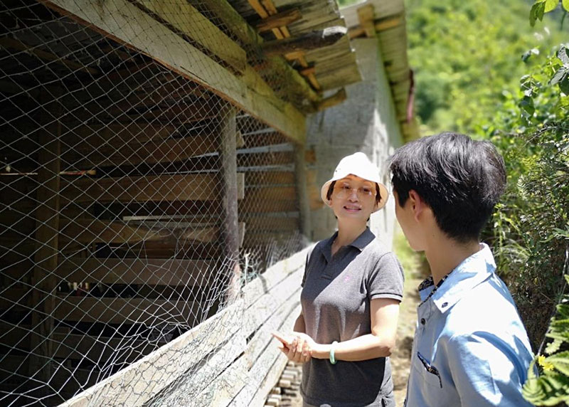 重慶大德公益基金會負責人查看“山地雞養殖扶貧”項目。民生銀行重慶分行供圖