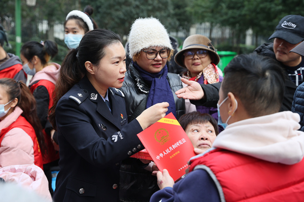 人民網重慶12月4日電 12月3日下午,全國道德模范、重慶市公安局沙坪壩區分局磁器口派出所民警何巧組織了一場特殊的法治宣傳,用手語為磁建村社區群眾宣講憲法知識。