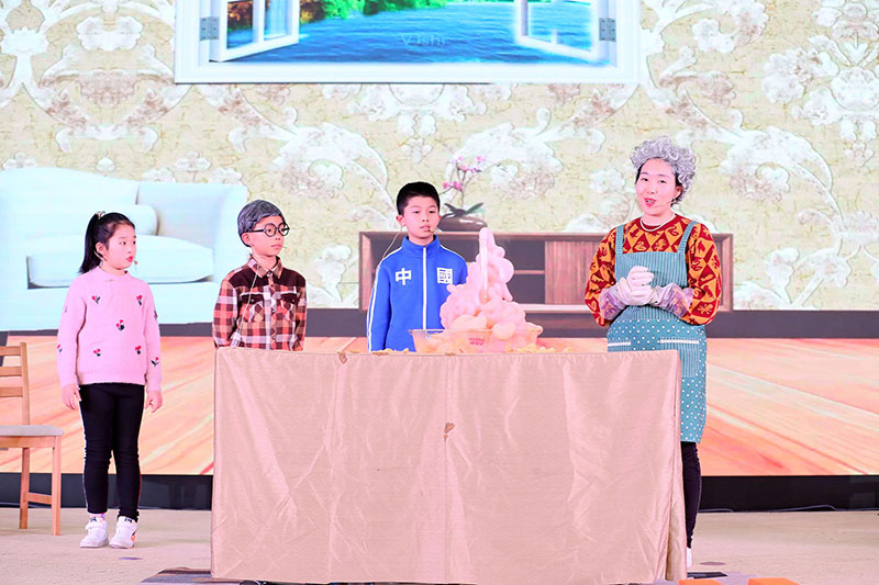 同時,小小科技輔導員們表演科普劇《青青草原保衛戰》、科學實驗《神奇的噴泉》、合唱《明天會更好》等節目,用形象化的方式為觀眾科普垃圾分類、生活中的化學等科學知識。