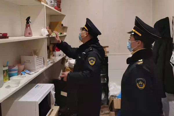 人民網重慶12月9日電 12月9日,江津區衛生健康綜合行政執法支隊衛生監督員王榮偉、洪勝華來到濱江大道某酒店,通過查看相關證照,仔細翻閱衛生管理檔案,并對酒店消毒間、布草間、保潔工具車、客房衛生等進行了全方位的體檢!拔拿鞒菂^的創建離不開各行各業的配合,通過對經營場所衛生許可證、人員健康證明、顧客用品用具消毒執行情況的檢查,能有效促進商家衛生管理主體責任的落實!毙l生監督員王榮偉說。