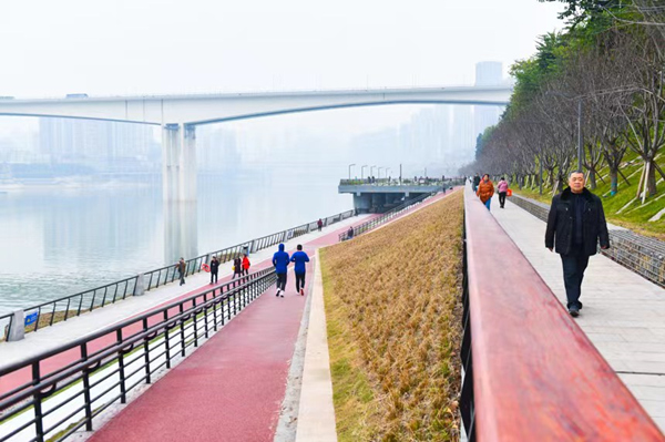 在江北嘴江灘公園,市民們了解了‘兩江四岸’核心區重點岸線治理提升項目,并對未來濱江水岸的變化產生了期待。市民吳爽的家就在公園附近,他親眼見證了這塊消落區的變化!斑@里以前都是荒地,但是修了江灘公園過后,路又寬又平又好走,生態環境更好了,我一周都會帶孩子來1-2次,感受城市的變化!