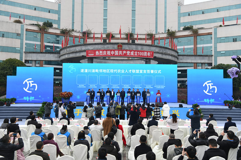 開幕式上,潼南、彭水、遂寧、內江等川渝八地聯合發布了《遂潼川渝毗鄰地區現代農業人才聯盟宣言》,標志著遂潼川渝毗鄰地區現代農業人才聯盟正式成立。