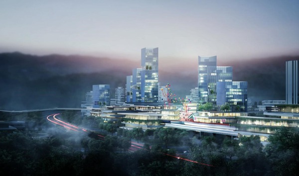 空間上構建4公里長的綠廊慢行系統,形成聚集各種公共設施的“智慧中樞”。在三線交匯樞紐上以“聚能云環”,串聯包含大數據企業總部、五星級酒店、萬物互聯科技館等,打造 “創智中樞城”。