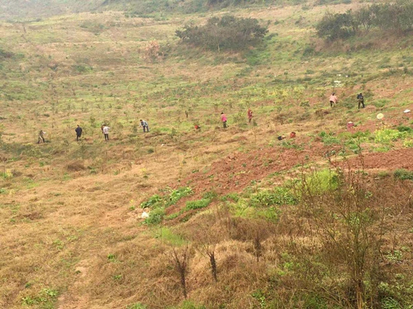 村民在桐桷村大寨旁栽種生態林。玉峰山鎮供圖