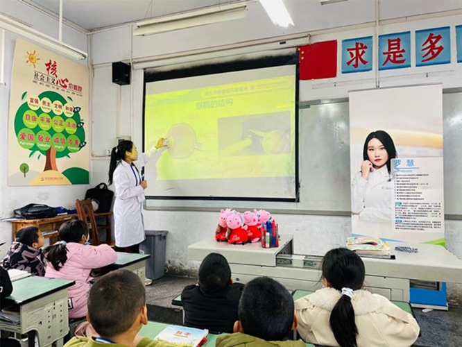 重慶市江北區近視防控中心眼健康科普講師羅慧將眼健康科普講座帶進班級,為50余名同學們帶來一場科普知識講座。羅慧從視力發育規律、近視的成因、近視的危害、如何預防近視等方面系統闡述了關于眼健康的知識。
