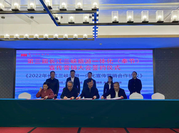 會上各相關單位簽訂了2022年長江三峽旅游一體化區域宣傳營銷合作、鄭萬高鐵聯盟旅游合作成渝地區“五絕九城”聯盟2022年旅游合作等協議,進一步推動長江三峽區域旅游合作。并以此次合作為契機,充分發揮自身優勢,全力推動成渝雙城、鄭萬高鐵沿線城市資源共享、產業共興、事業共榮,強化多方位交流,共同探索高質量發展新路徑,實現互利共贏。