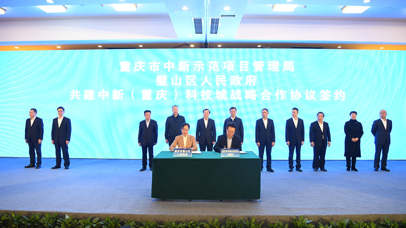 重慶市中新項目管理局與璧山區人民政府簽訂戰略合作協議。曾清龍攝