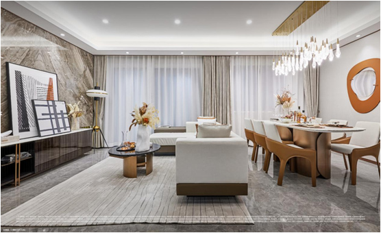 在精裝修上,尋光沙磁嚴選美學與實用并存的行業一線品牌裝修用材,如方太電器、歐神諾瓷磚等,為居者帶來精致奢華的空間景象;以“人性化關懷”為導向,廚房采用防污易清潔板,有效避免衛生死角,在衛浴間考慮洗漱用品收納,設置浴室鏡柜,采用具有強大收納功能的鏡柜和盆下柜等,考量充分細節,讓生活更貼心……