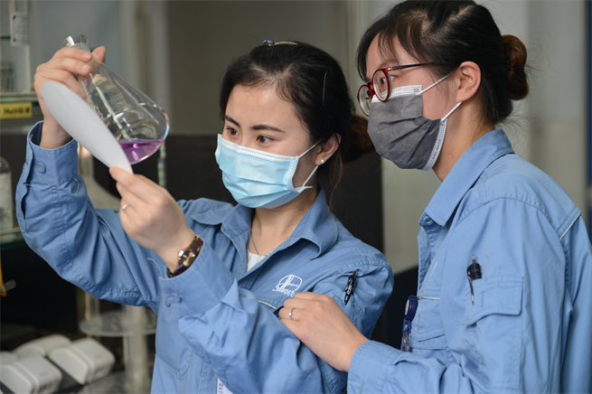 檢驗人員對產品進行質量檢測。川維化工供圖