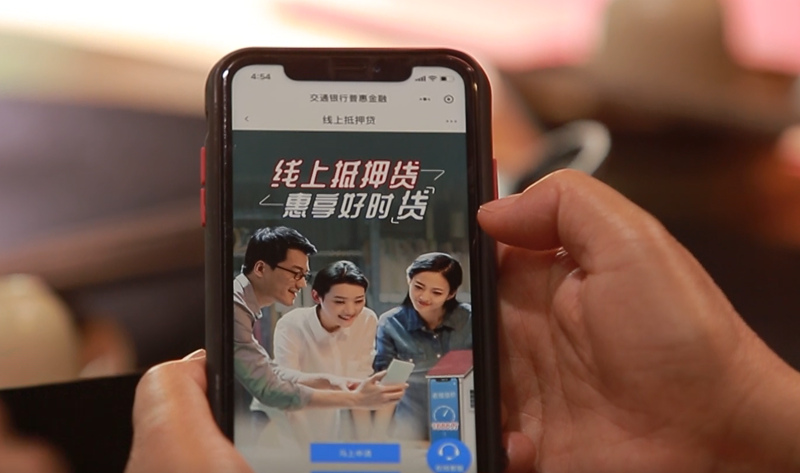 小微客戶使用手機申請交行“線上抵押貸”產品。交行重慶市分行供圖