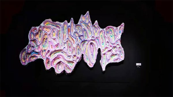 據了解,本次展覽展出青年藝術家李軍政最新創作,共計30余件精品。在整個黑色典雅的展廳中,藝術家的作品顯得分外生動,色彩大膽艷麗。與其他架上繪畫有所不同的是,平常用于手工手作的“超輕黏土”成為了藝術家藝術創作的材料媒介,這些作品有的是3D立體形態,也有的是自然生長的狀態?,F場觀展的來賓無不驚嘆藝術家的創造力及扎實的基本功。其中,藝術家根據展廳的規劃現場創作的作品“皮層2021-43”,用各色超輕黏土層層疊加,形成一個巨大的平面,然后再用刀具慢慢刻成起伏的形態。整個畫面色彩層次靈動,同時與有趣的雕刻成型的圖案結合,讓人立刻聯想到山城的樣子。