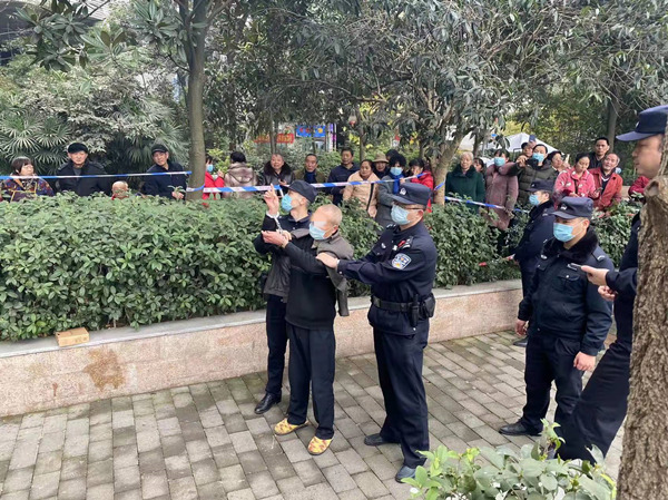 傅某指認作案現場。渝中警方供圖