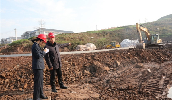 重慶祎豪源建設工程有限公司工作人員(右)向石柱土家族自治縣稅務人員(左)介紹鄉村公路建設情況。楊婷婷攝