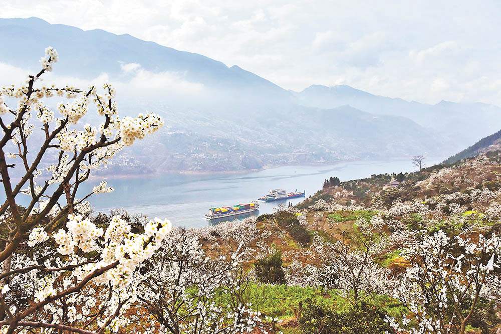 每年春天,在素有“花果之鄉”的巫山縣曲尺鄉,長江兩岸成片的李花盛開,分外美麗。