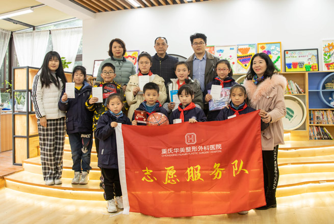 “加油,只要努力就能飛得更高更遠?!薄靶履昕鞓?,希望你好好學習,練就一身好本領?!本栀洭F場,重慶華美整形外科醫院的醫生代表整形修復專家曹勇、耳修復再造專家李超拿著準備好的禮物和手寫的愛心卡片,給孩子們或是講解帶去的圖書、或是遞上心愛的籃球、乒乓球拍、水彩顏料……