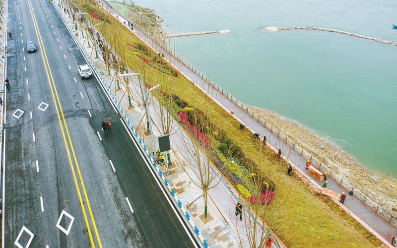 2020年下半年,北碚區又啟動了濱江休閑帶(二期)項目建設,包括濱江道路、休閑帶和景觀建設。濱江路(二期)起于廟嘴,與已建成的濱江休閑帶一期相接,止于金剛碑南側,全長約2.5公里。由于所處區域在溫塘峽下游,江水湍急,江岸多是亂石灘和懸崖峭壁,北碚區在打造這段江岸時,采取了最小干預的方式,盡可能保留了原生灘涂及巨石駁岸,規劃建設灘涂景觀帶、生態休閑區、石灘藝術區、濕地尋蹤區和北碚之源區,讓前來休閑的市民“望得見山、看得見水、記得住鄉愁”。