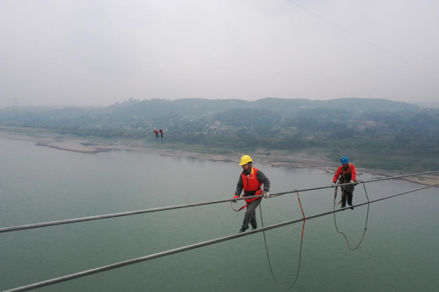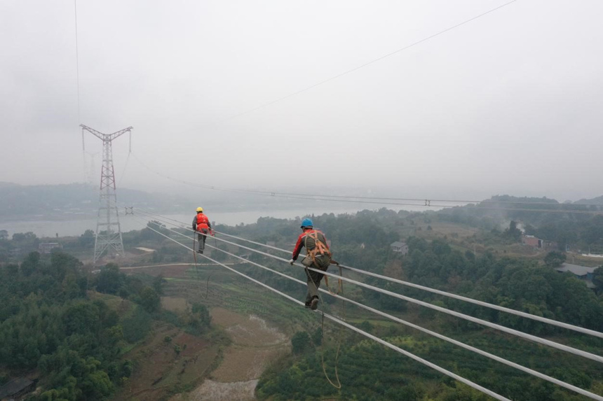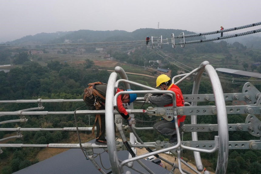 人民網重慶1月14日電 “報告驗收組長,現已全部完成±800千伏白江線江津段長江大跨越2080號塔至2083號塔的走線驗收工作,申請下塔”。1月12日,隨著國網重慶超高壓公司輸電運檢人員完成2.5公里跨江走線驗收,標志著國家“西電東送”重點工程白鶴灘-江蘇±800千伏特高壓直流輸電線路工程(重慶段)江津長江大跨越驗收圓滿完成,為2022年該線路全線貫通和正式投運打下了堅實基礎。