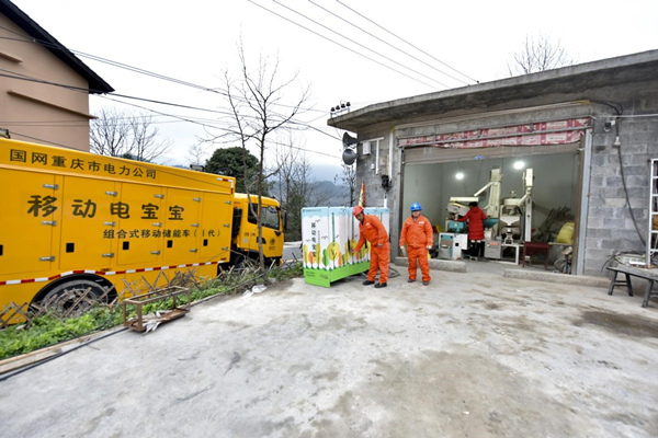 1月15日,國家電網紅巖共產黨員服務隊為酉陽花田鄉村民打米作坊接入了組合式移動儲能裝置。陳碧生攝